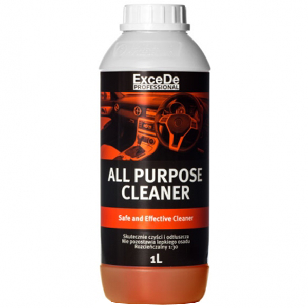 ExceDe APC – to bezpieczny, a zarazem bardzo skuteczny środek do czyszczenia wewnętrznych oraz zewnętrznych elementów auta. Znakomicie radzi sobie z czyszczeniem wszelkich twardych powierzchni, deski rozdzielczej, plastików, detali, komory silnika czy tapicerki. Doskonale odtłuszcza oraz usuwa wszelkie zabrudzenia, kurz, smar, ślady po butach, osad po papierosach, film drogowy itp. Nie wysusza oraz nie pozostawia lepkiego czy białego osadu. Posiada przyjemny zapach.