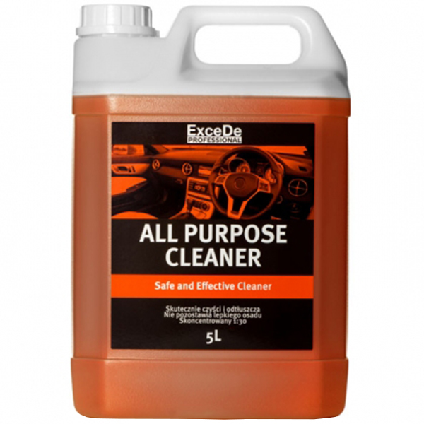 ExceDe APC – to bezpieczny, a zarazem bardzo skuteczny środek do czyszczenia wewnętrznych oraz zewnętrznych elementów auta. Znakomicie radzi sobie z czyszczeniem wszelkich twardych powierzchni, deski rozdzielczej, plastików, detali, komory silnika czy tapicerki. Doskonale odtłuszcza oraz usuwa wszelkie zabrudzenia, kurz, smar, ślady po butach, osad po papierosach, film drogowy itp. Nie wysusza oraz nie pozostawia lepkiego czy białego osadu. Posiada przyjemny zapach.